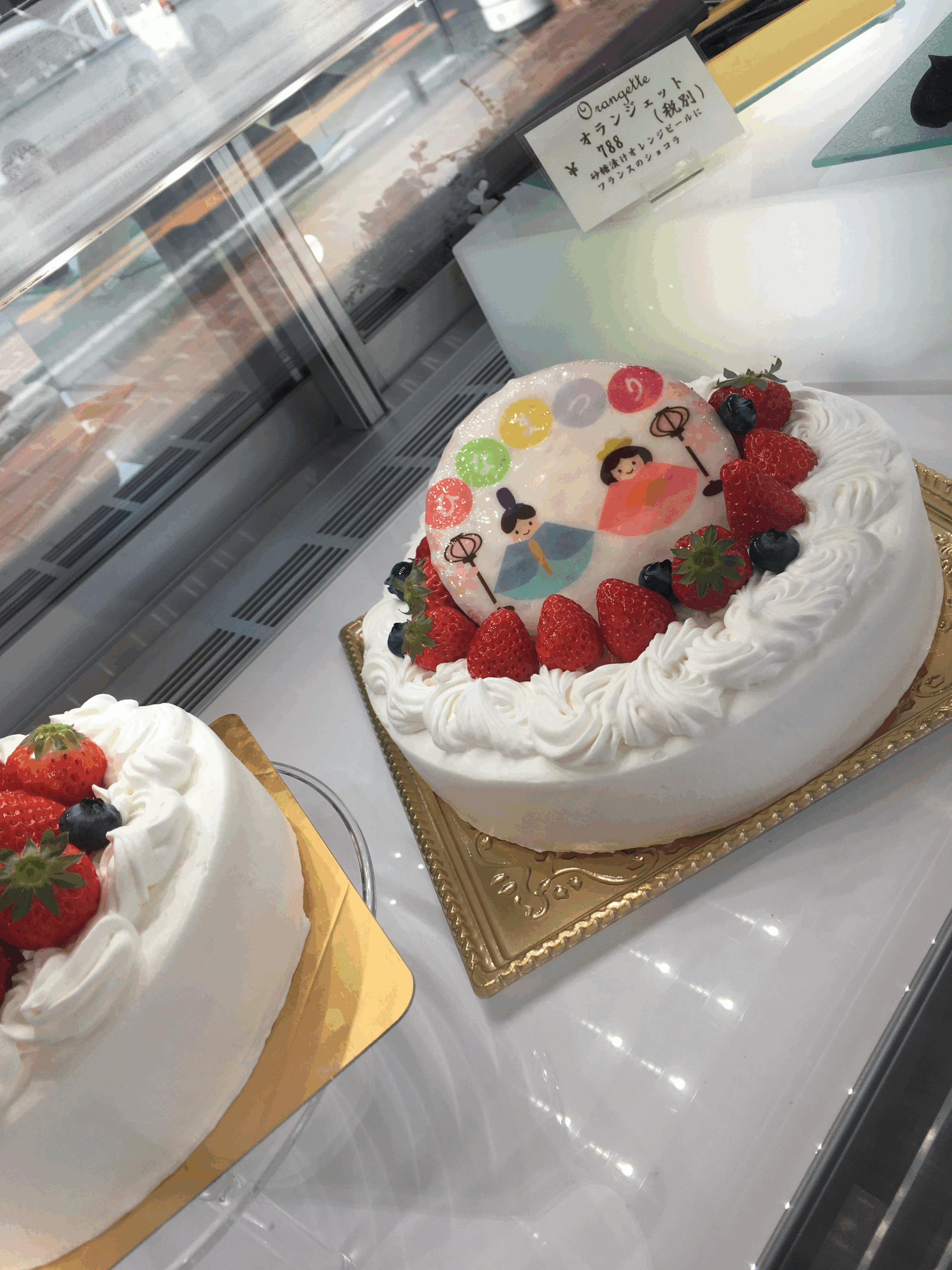 お客様からお問い合わせを多数いただき、予定にはなかったお雛様のデコレーションケーキをご用意いたしました。